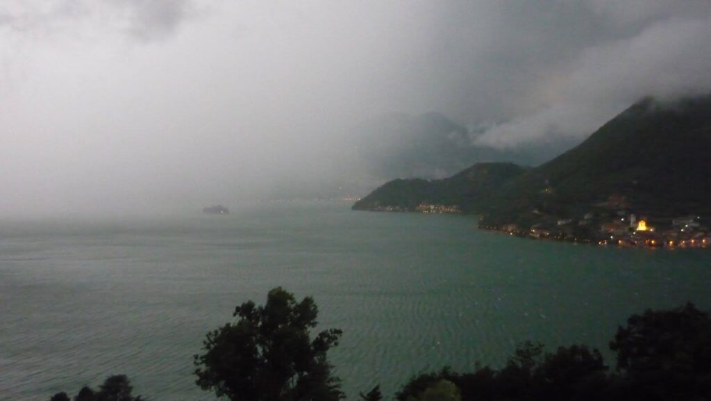 Si narra di un amore infelice di una fanciulla di Montisola promessa in sposa ad nobile della franciacorta. Ella si recava ogni giorno a Sensole dove specchiandosi sulle acque del lago piangeva la propria sfortuna. Un giorno cadde in acqua ma fortunatamente un pescatore di Sarnico corse in suo aiuto salvandola. I due si innamorarono e furono felici fino al giorno in cui il padre della donna, un nobile del luogo, li scopri e ordino alla figlia di non vedere piu l’innamorato, rinchiudendola nel castello in cui vivevano. Al pescatore tocco sorte peggiore: fu imprigionato in una grotta profonda nascosta tra i boschi sul monte di Sarnico. I due innamorati per mesi vissero nel dolore per la separazione. Giunse il giorno del matrimonio della fanciulla con il nobile della franciacorta e il signorotto ordinò l’uccisione del pescatore. Il dolore della fanciulla alla notizia fu grande e approfittando della disattenzione del padre si uccise gettandosi nelle acque del lago, per poter ricongiungersi al suo pescatore. La leggenda racconta che quando si scatena la Sarneghera i due giovani si stanno cercando sul fondo del lago e che il cielo per vendetta si scaglia, da Sarnico, su Montisola e sulla Franciacorta.